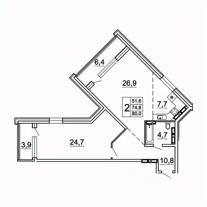 Общая площадь80 м²