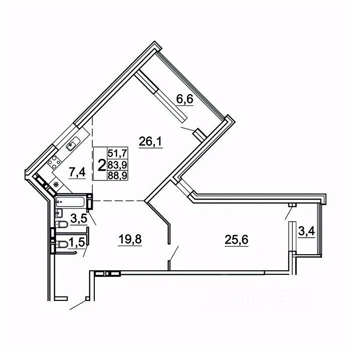 Общая площадь88,9 м²