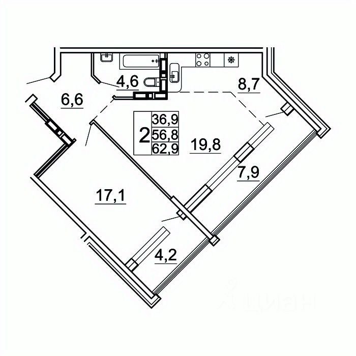Общая площадь62,9 м²