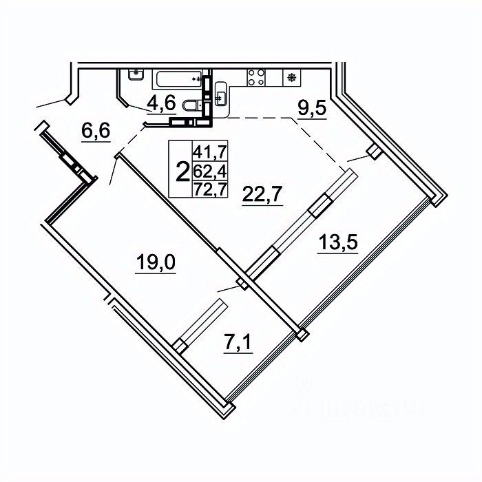 72,7 м²