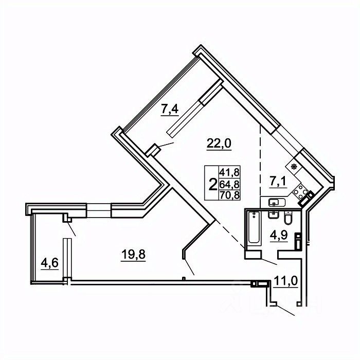 Общая площадь70,8 м²