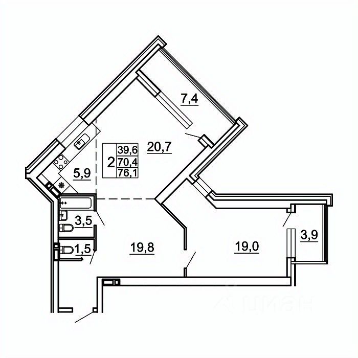 Общая площадь76,1 м²
