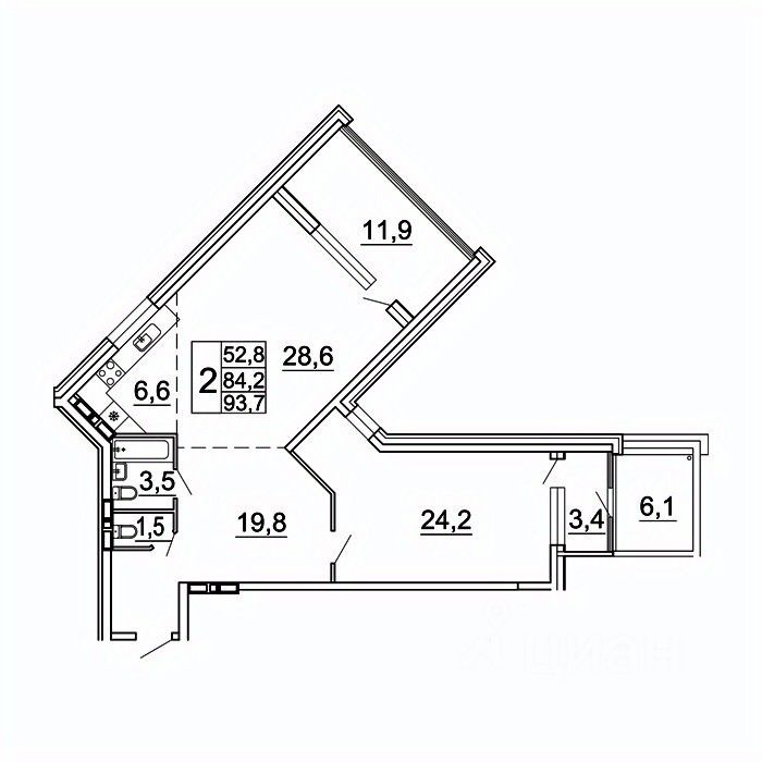 Общая площадь93,7 м²