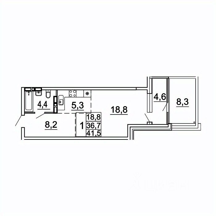 Общая площадь41,5 м²