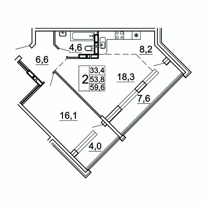 Общая площадь59,6 м²