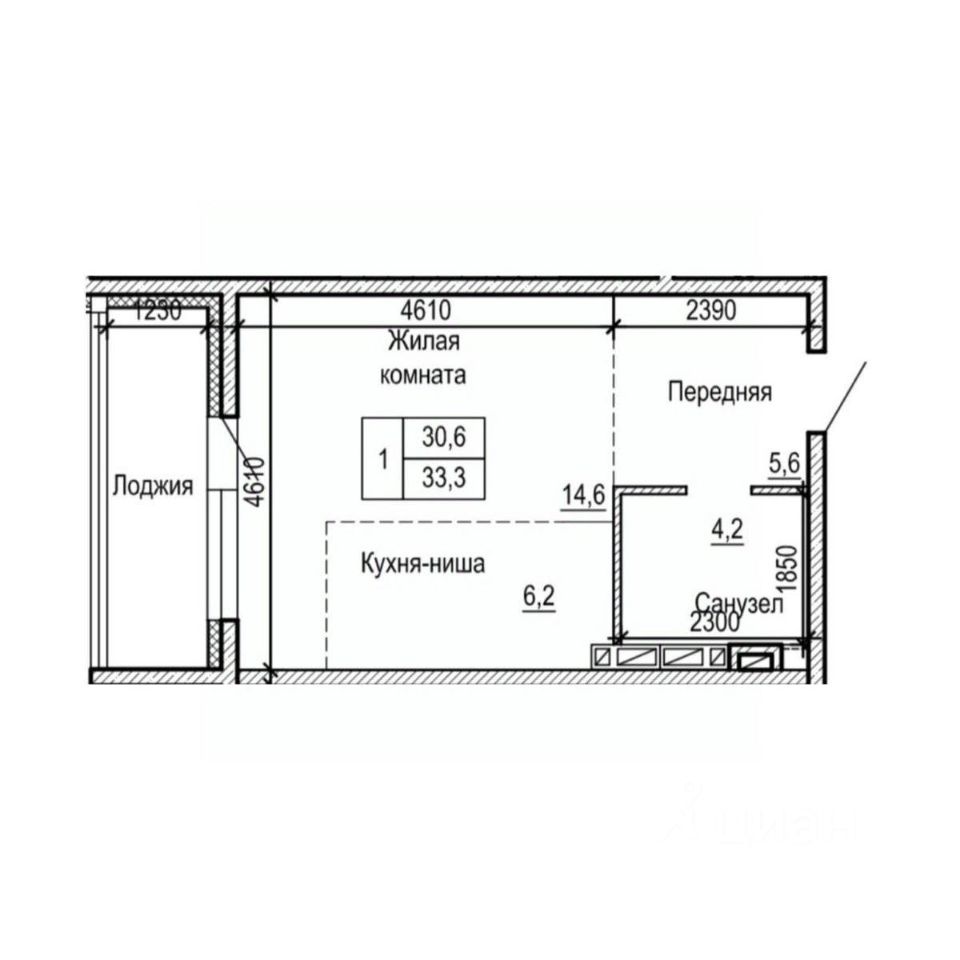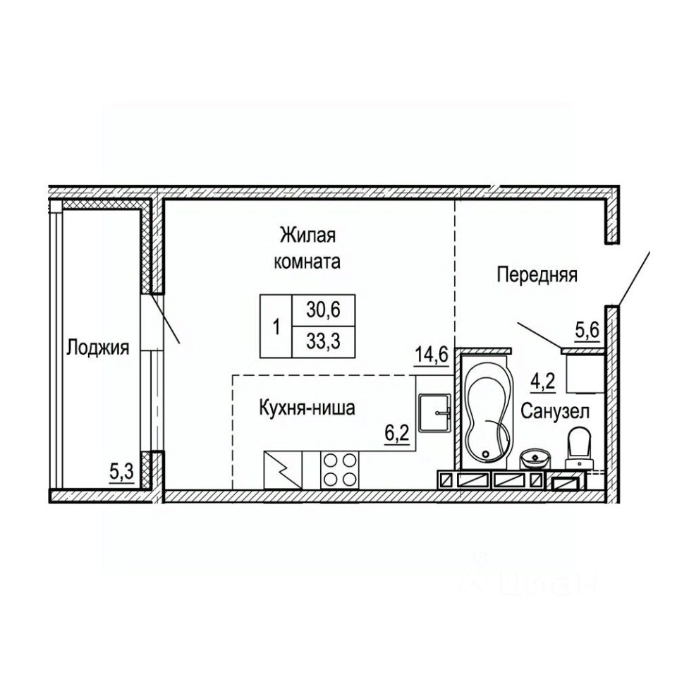 Общая площадь33,3 м²