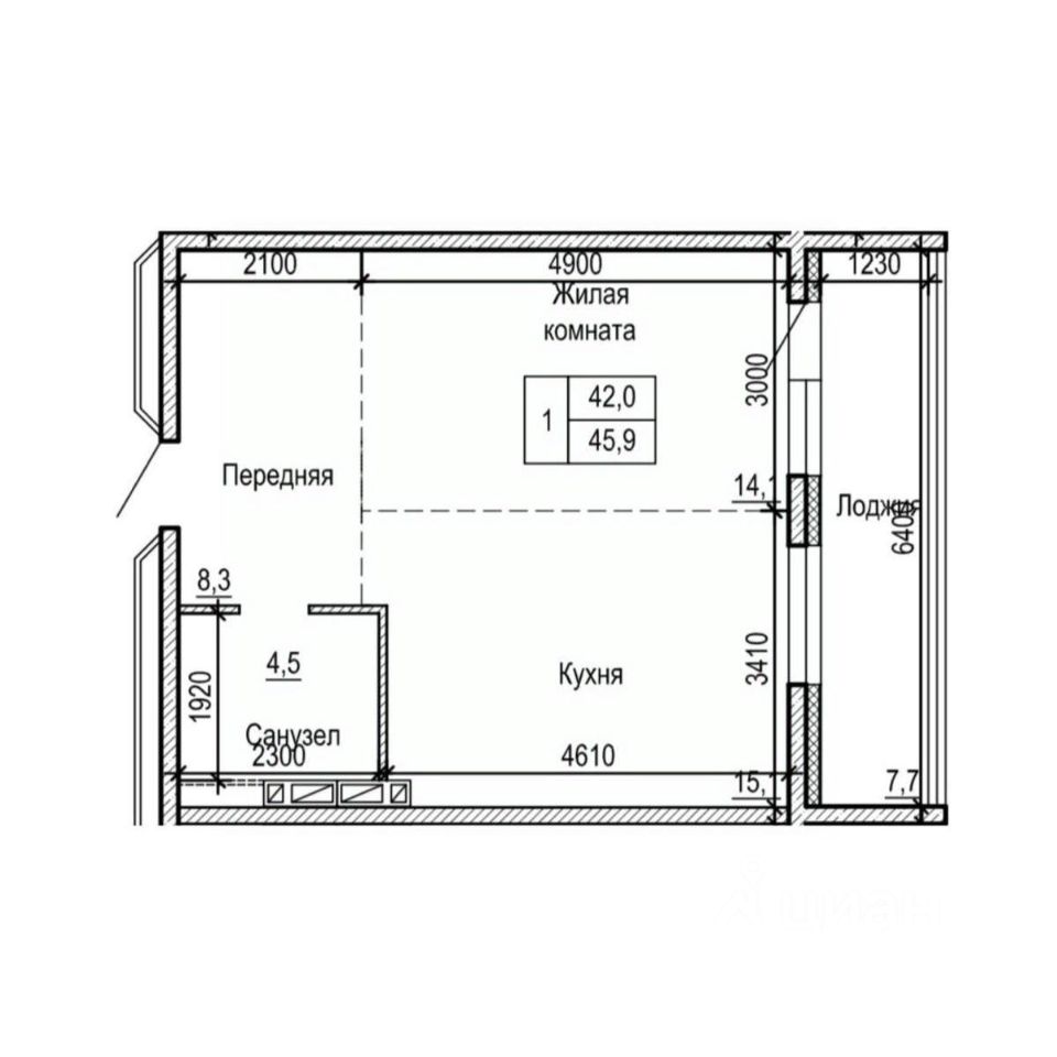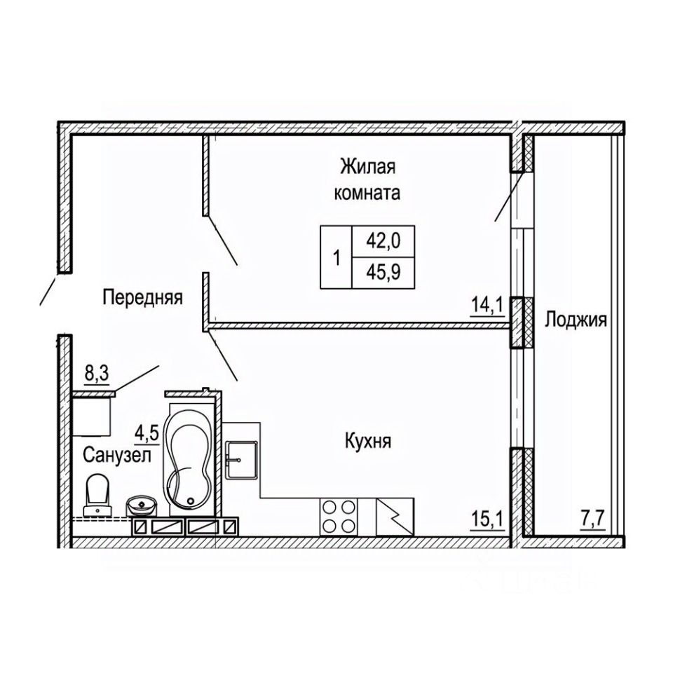 Общая площадь45,9 м²