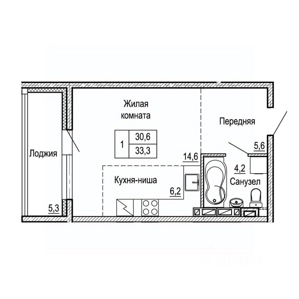 Общая площадь33,3 м²
