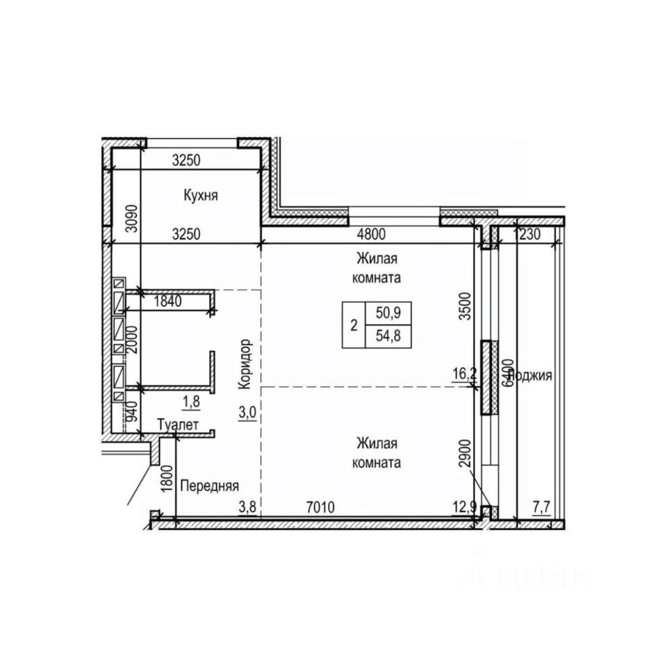 Общая площадь54,8 м²