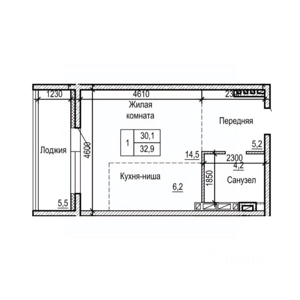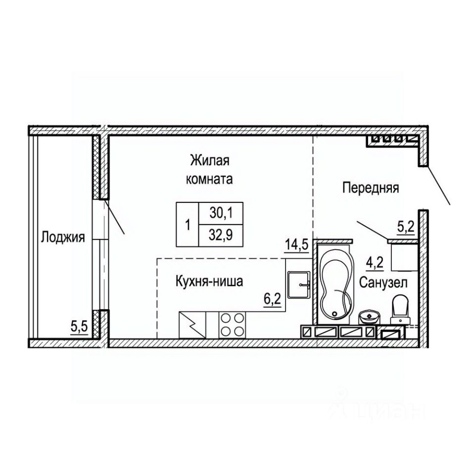 32,9 м²
