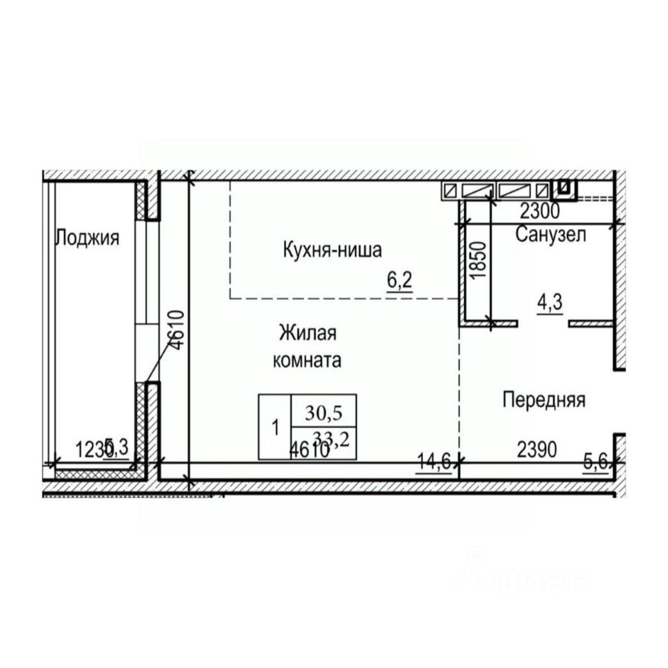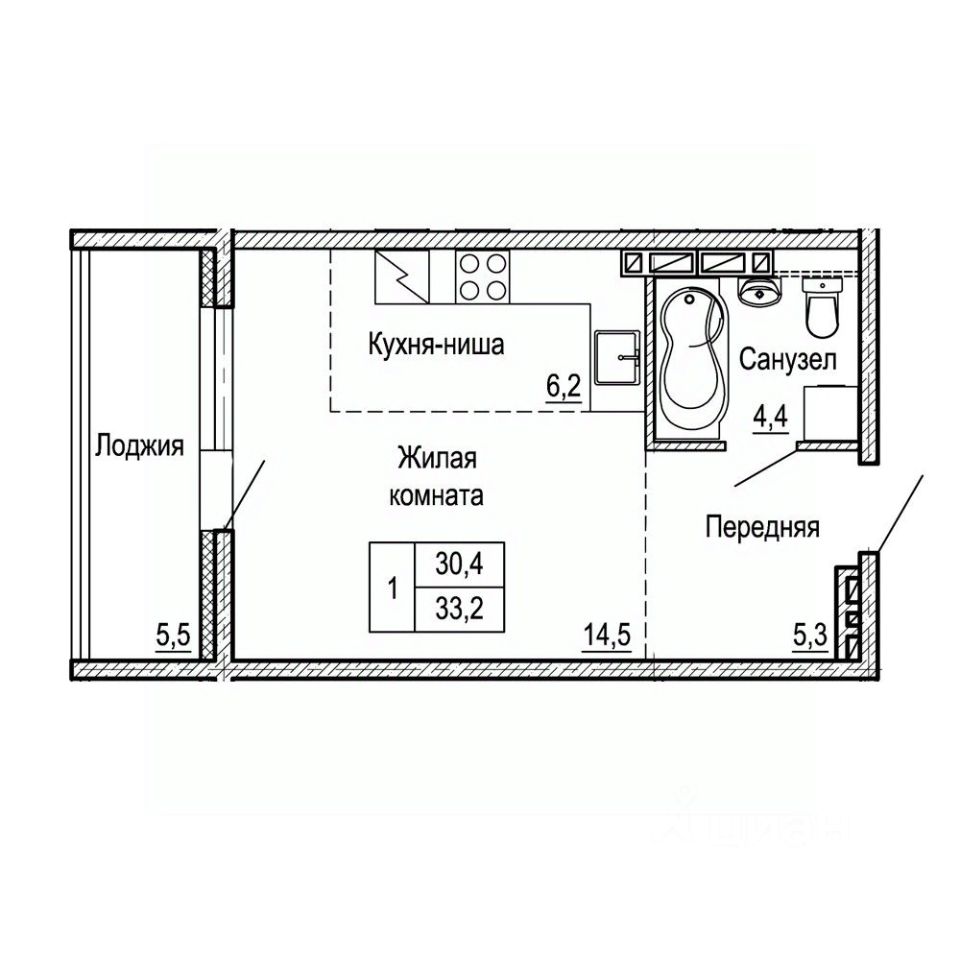 Общая площадь33,2 м²