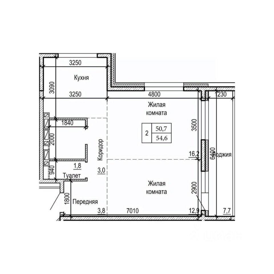 Общая площадь54,6 м²