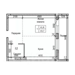 Общая площадь45,7 м²