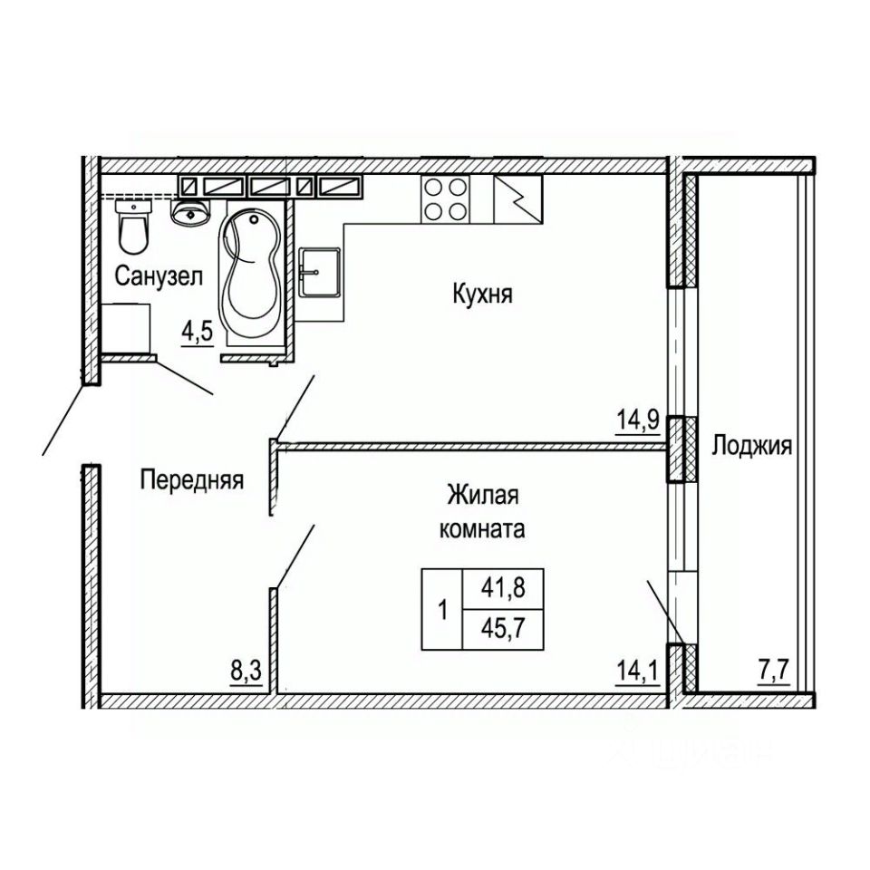 Общая площадь45,7 м²
