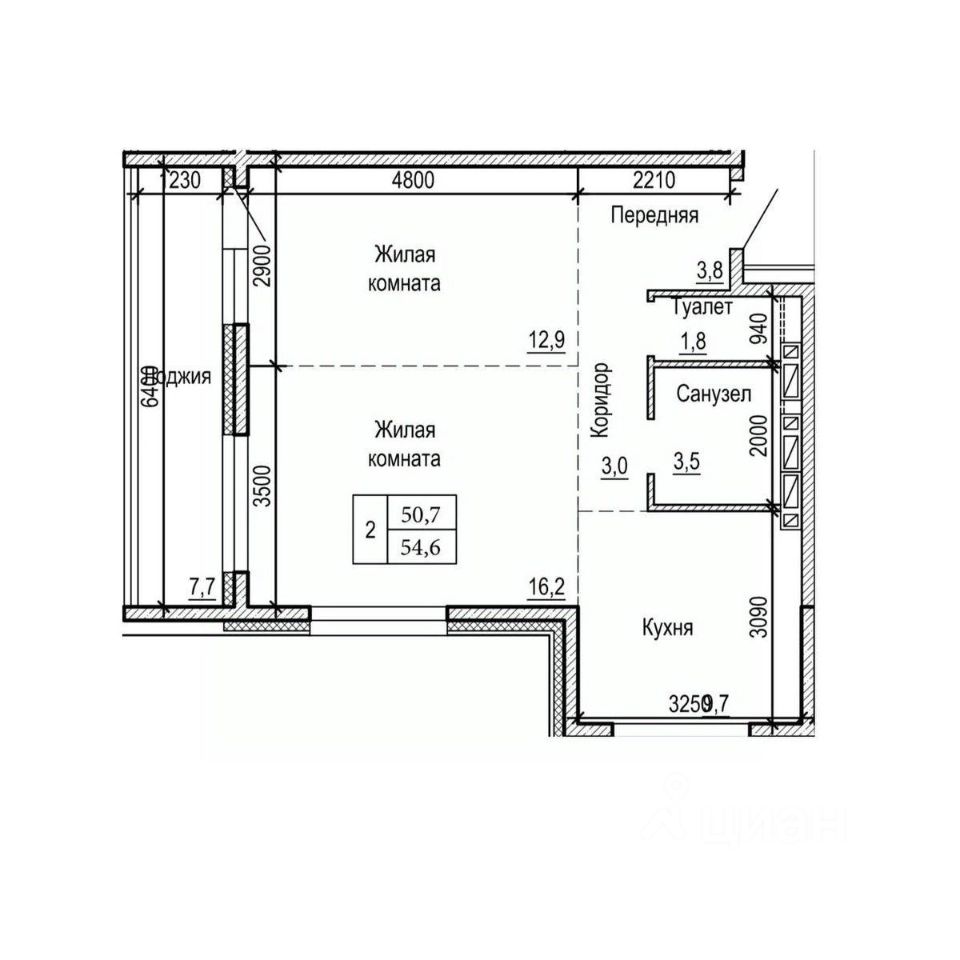 Общая площадь54,6 м²