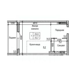 32,7 м²