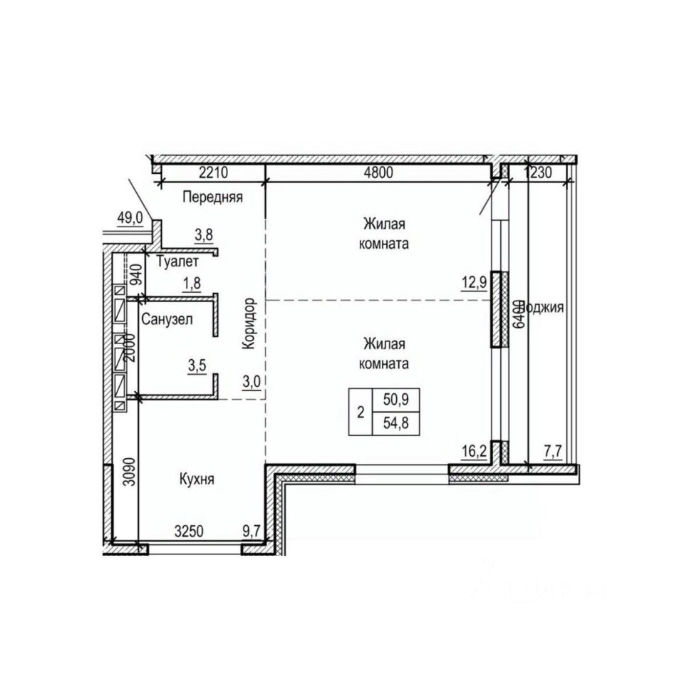 Общая площадь54,8 м²