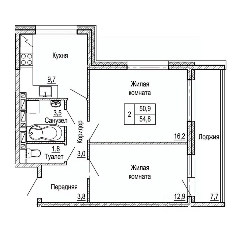 Общая площадь54,8 м²
