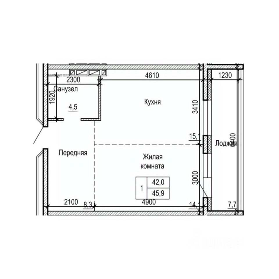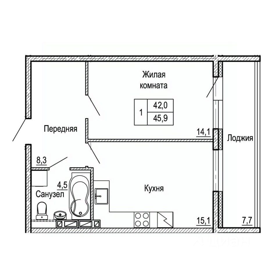 Общая площадь45,9 м²
