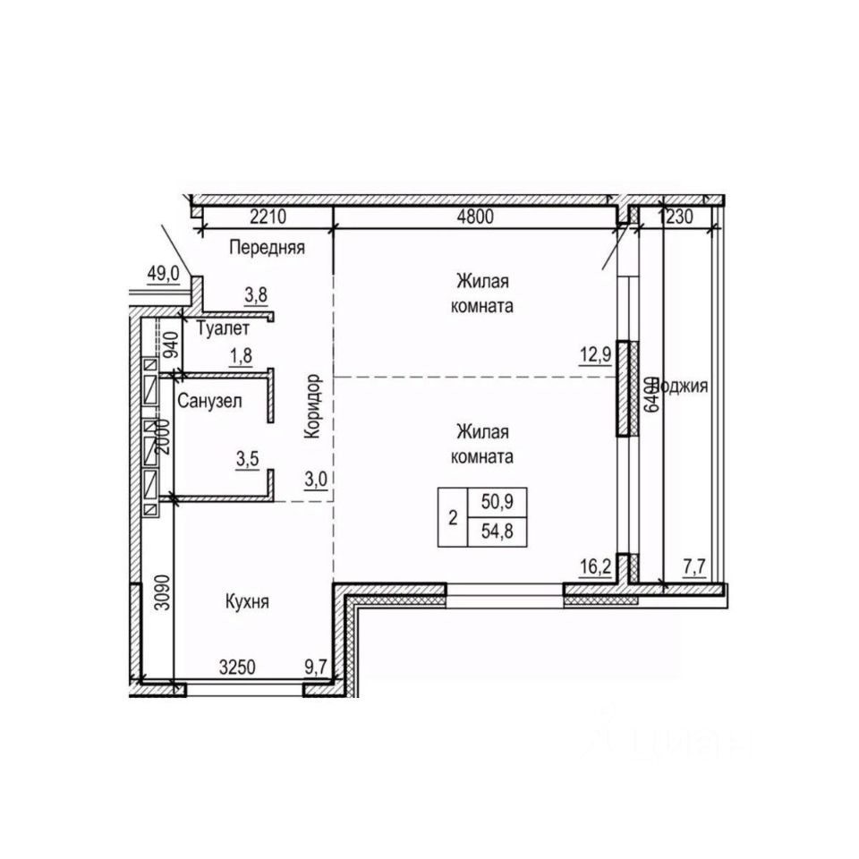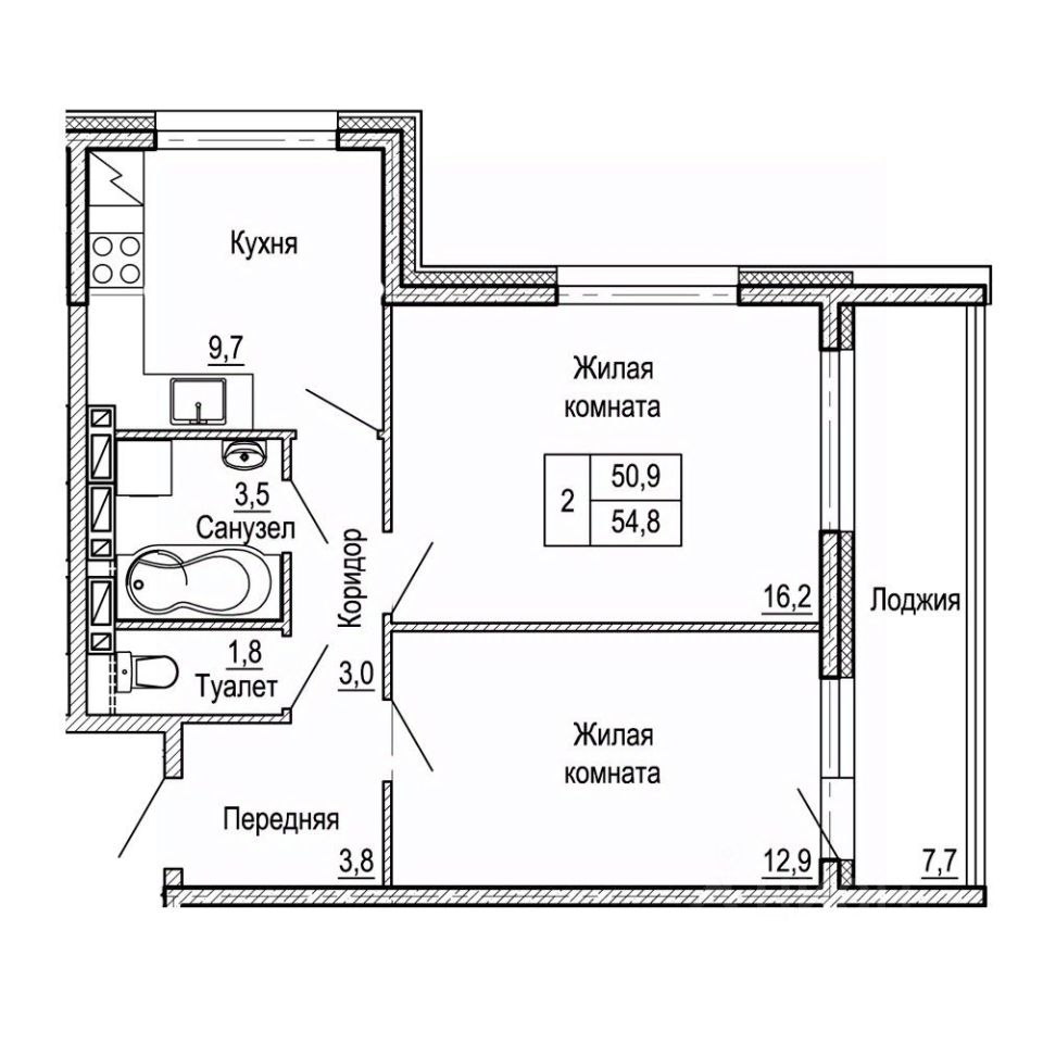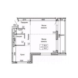 Общая площадь54,8 м²