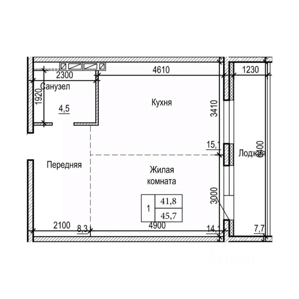 Общая площадь45,7 м²