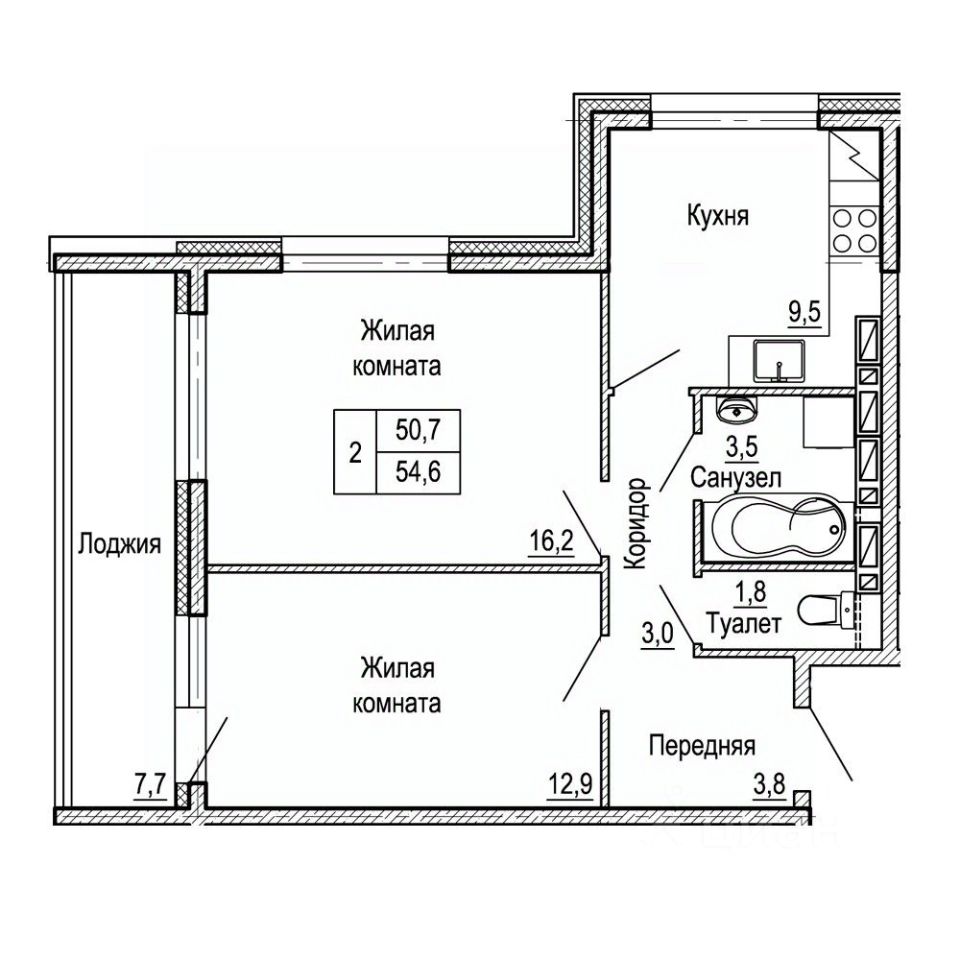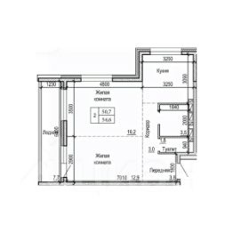 Общая площадь54,6 м²