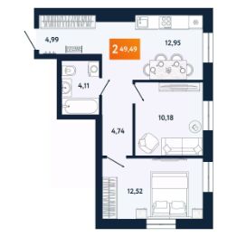 2-комн. от 49,49 м²