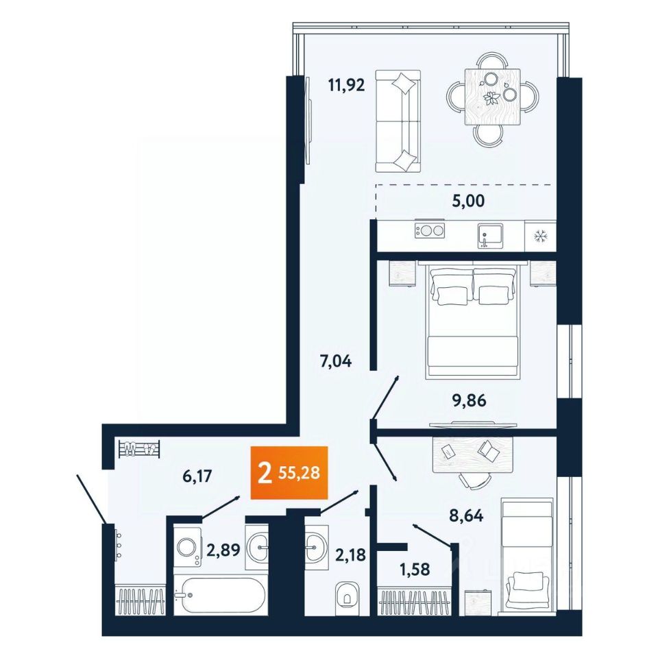 3-комн. от 55,27 м²