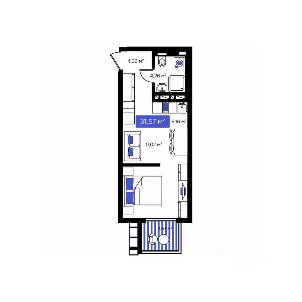 Общая площадь31,57 м²