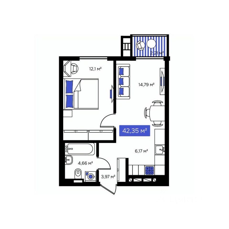 Общая площадь42,35 м²