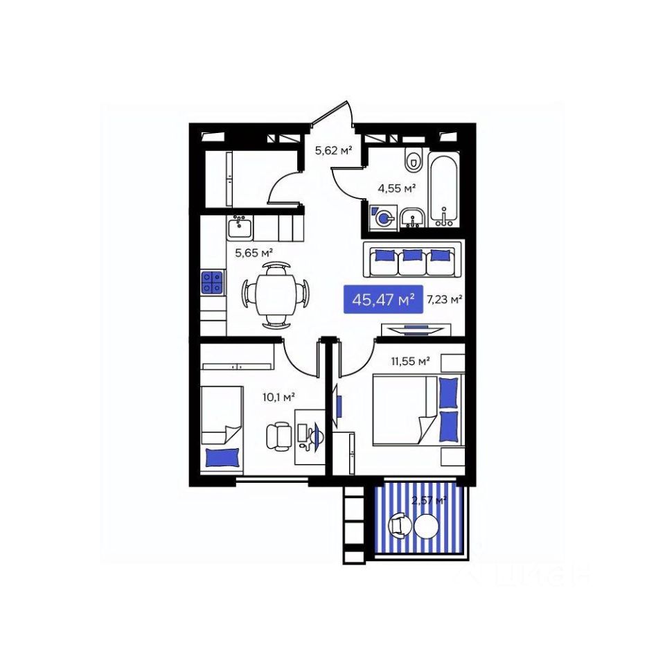 Общая площадь45,47 м²