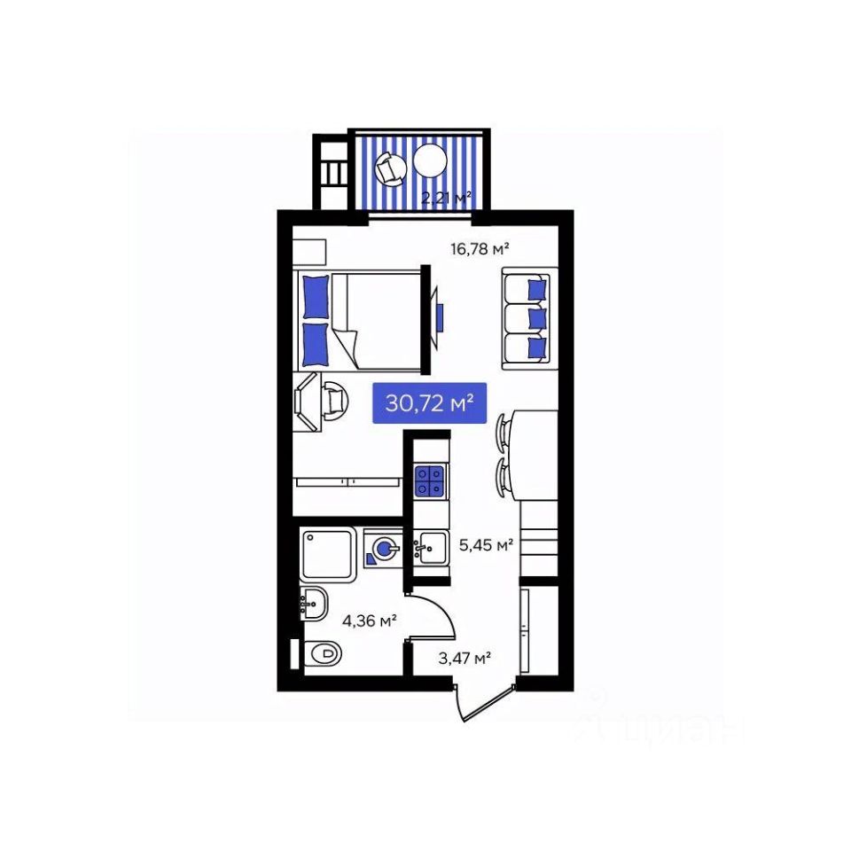 Общая площадь30,72 м²
