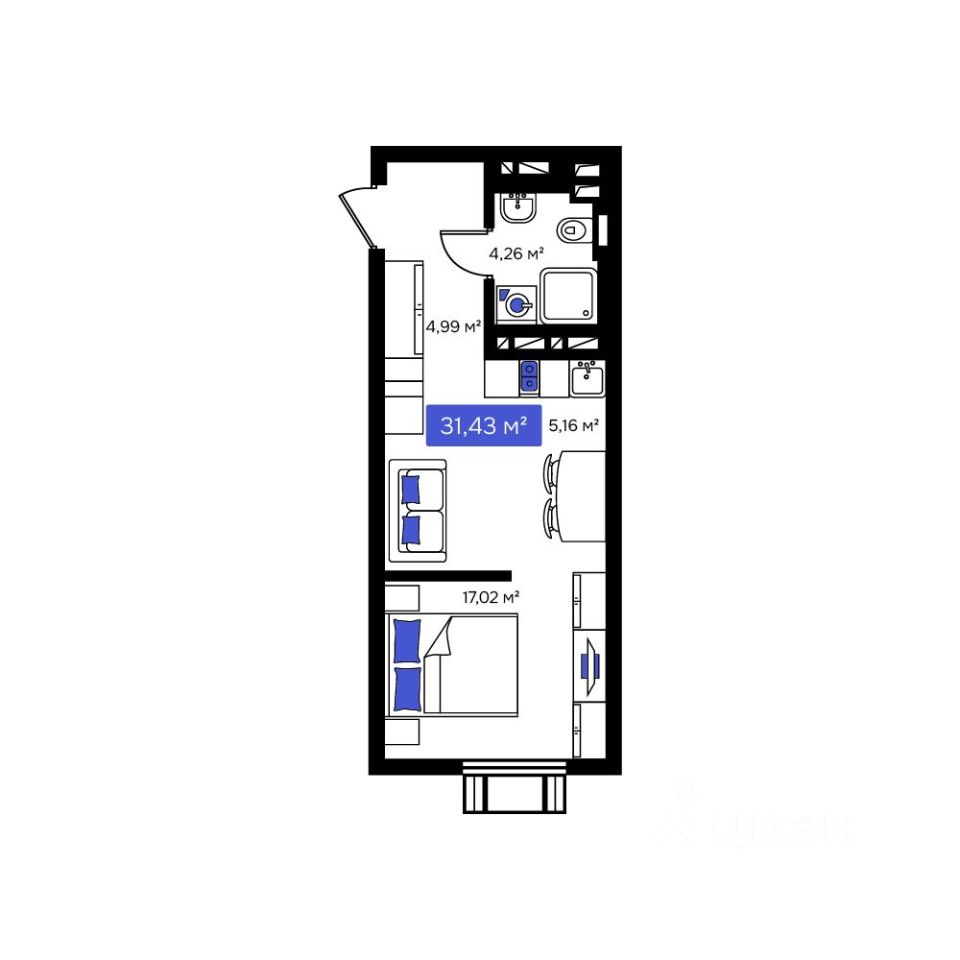 Общая площадь31,43 м²
