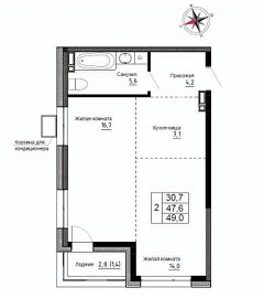 Продаётся 2-комнатная квартира в строящемся доме (Дом 2), срок сдачи: III-кв. 2026, общей площадью 49 кв.м., на 1 этаже. ЖК "Новый" - это: