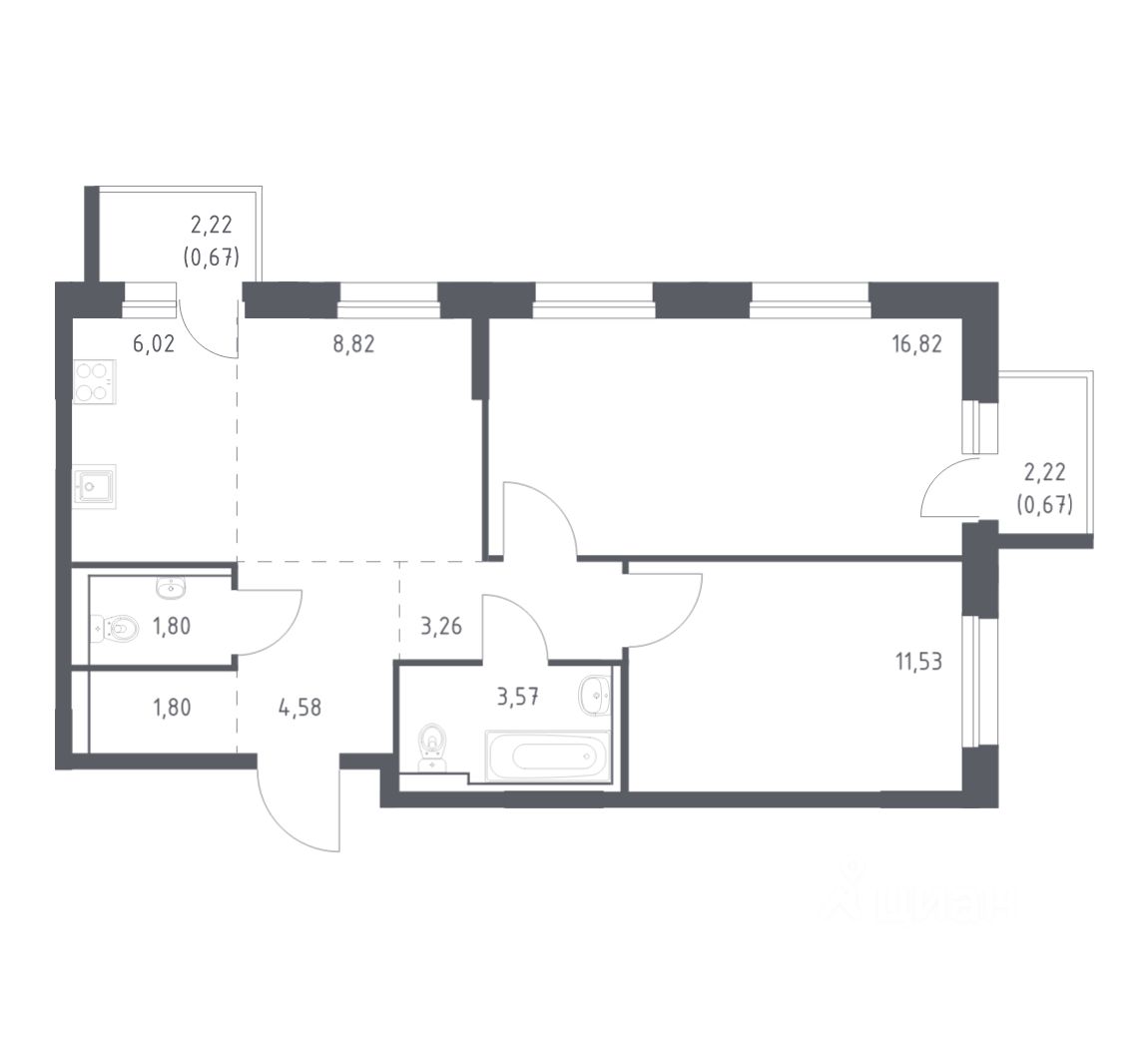 Строим кварталы для жизни с заботой о будущем. Предлагается 2-комнатная квартира комфорт-класса площадью 59.54 кв.м в корпусе 2КВ на 10-м этаже, в жилом комплексе "Маяк Днепровской".