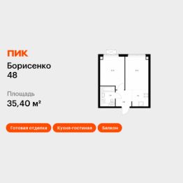Продаётся 1-комн. квартира площадью 35,4 кв.м на 8 этаже 30 этажного дома (Корпус 4, Секция 4) проекта ПИК Борисенко 48. Светлый просторный подъезд на уровне земли, функциональная планировка, большие окна, c отделкой.