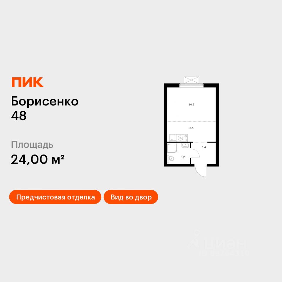 Продаётся квартира-студия площадью 24 кв.м на 5 этаже 28 этажного дома (Корпус 2, Секция 2) проекта ПИК Борисенко 48. Светлый просторный подъезд на уровне земли, функциональная планировка, большие окна, предчистовая отделка.