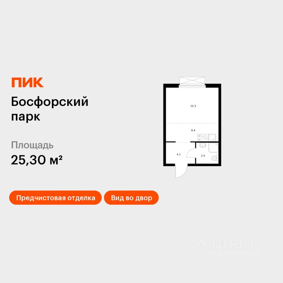 Продаётся квартира-студия площадью 25,3 кв.м на 15 этаже 17 этажного дома (Корпус 5, Секция 1) проекта ПИК Босфорский парк. Светлый просторный подъезд на уровне земли, функциональная планировка, большие окна, предчистовая отделка.