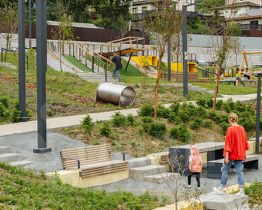 В квартале будет много мест для отдыха и активных игр, три вида парков и даже родник, который будет перетекать в ручей с порогами и препятствиями. На территории парков появятся амфитеатры и террасы. Здесь жители смогут отдыхать, гулять, общаться, учиться или работать на свежем воздухе. На естественных склонах будут обустроены игровые зоны для детей - с горками, сетками, канатами и скалолазными зацепами.