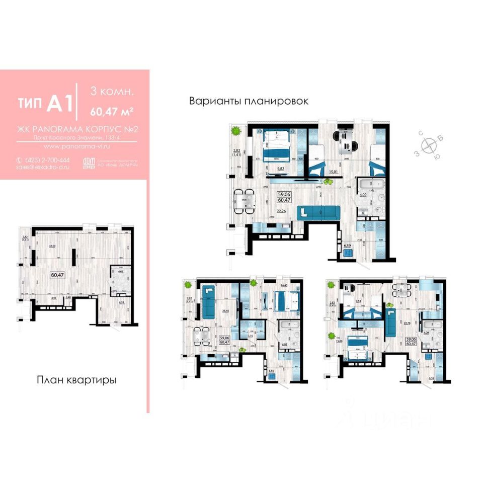 Общая площадь60,47 м²