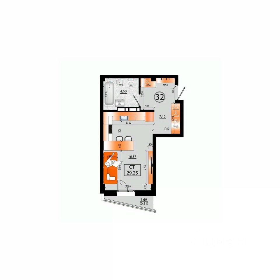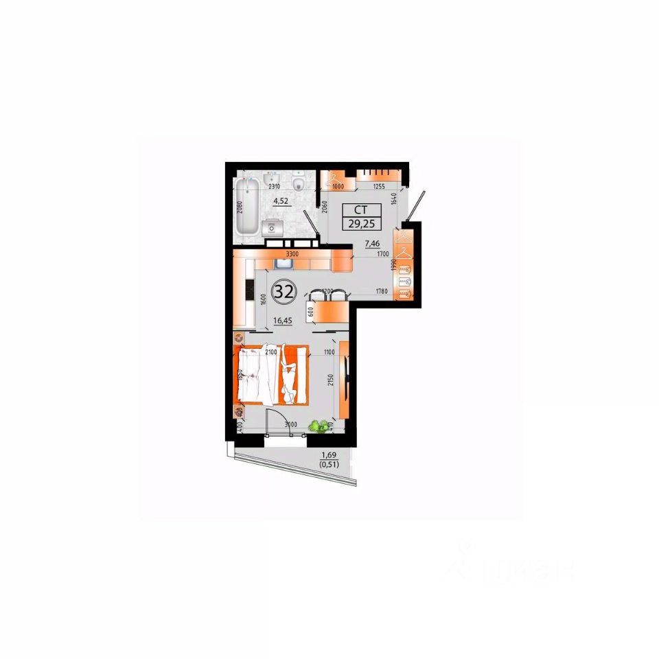 Общая площадь28,74 м²