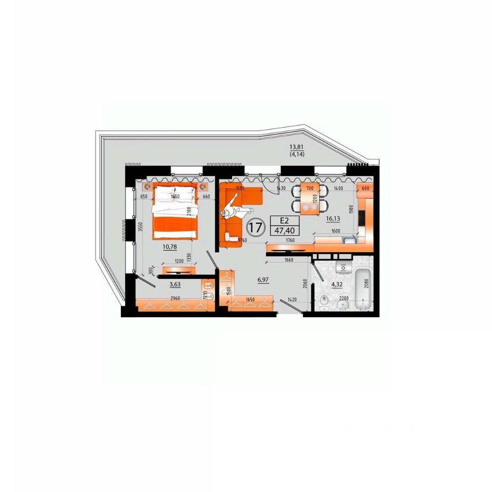 Общая площадь43,26 м²