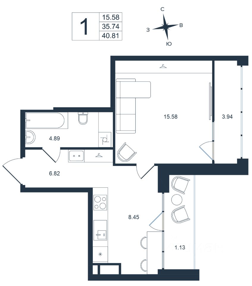 40,81 м²