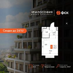 Продаётся квартира-студия номер 255 общей площадью 26.6 кв.м. на 5-м этаже 23 этажного здания. Предчистовая отделка. Цена с учётом скидки.