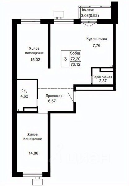Общая площадь73,12 м²