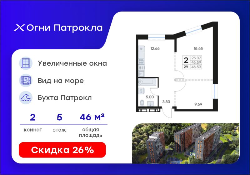 Продаётся 2-комнатная квартира в строящемся доме (Дом 3), срок сдачи: II-кв. 2028, общей площадью 46.59 кв.м., на 5 этаже. Новый жилой комплекс "Клуб 25" от застройщика "ГК Жилкапинвест" расположен по адресу город Владивосток, Катерная улица.