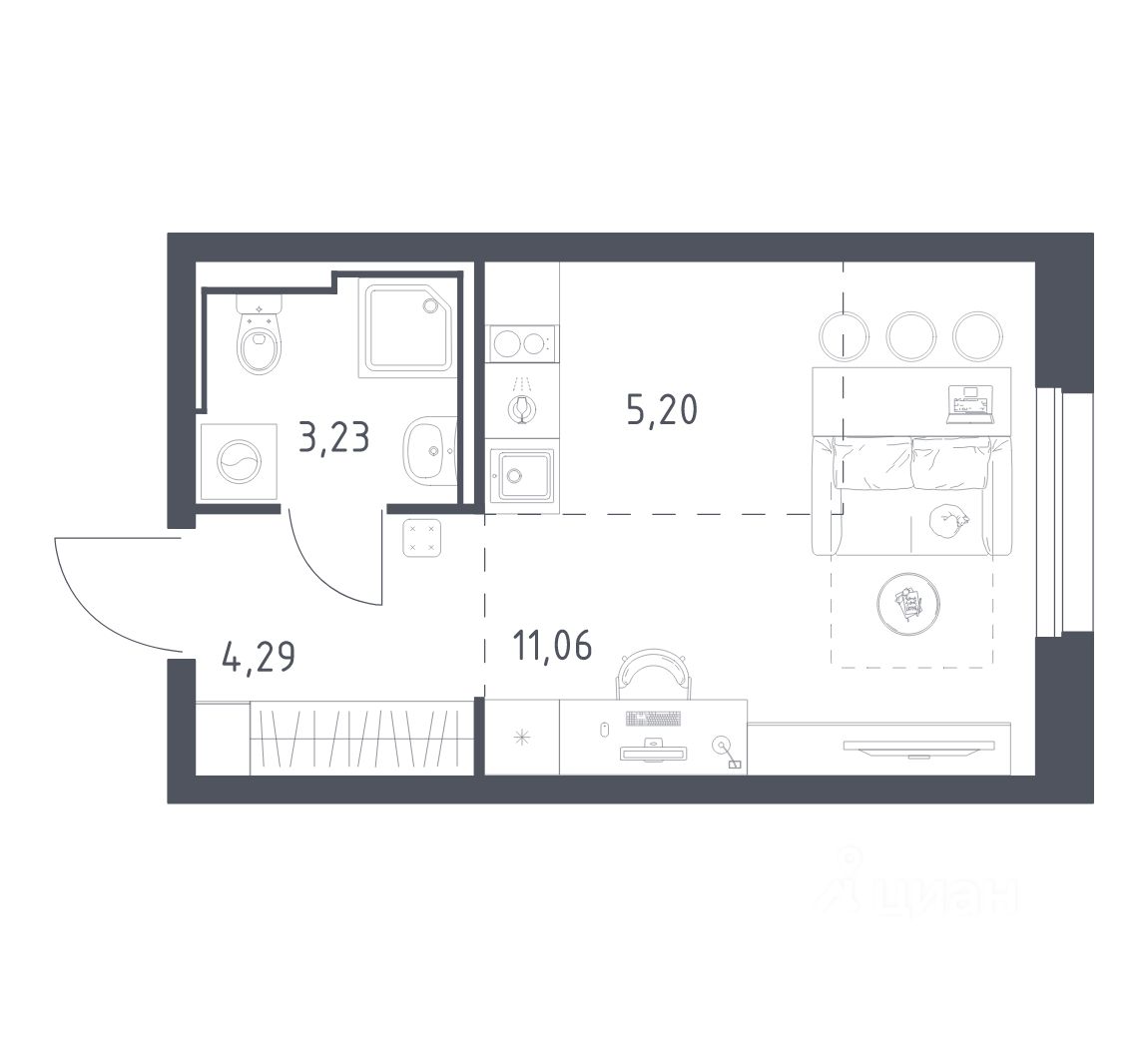 Строим кварталы для жизни с заботой о будущем. Предлагается студия комфорт-класса площадью 23.78 кв.м в корпусе 6КВ на 14-м этаже, в жилом комплексе "Квартал Нейбута".