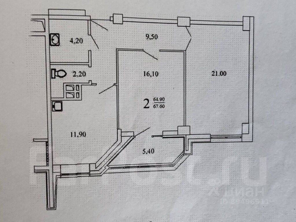 Продаётся 2-комнатная квартира площадью 66 м2 на 11 этаже 18-этажного дома.