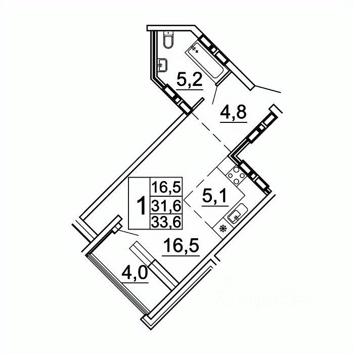 Общая площадь33,6 м²