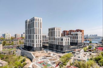 Амурский жилой комплекс на берегу Амурского залива в районе Эгершельд, состоящий из нескольких корпусов переменной этажности, собственного паркинга в стилобатной части и комфортабельных общественных пространств.